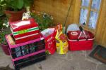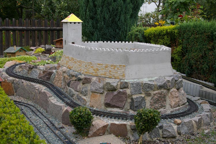 Anlässlich unseres Vereinsfestes mußte ich die Burg an ihren Platz stellen. Leider habe ich es bis zu diesen Zeitpunkt nicht geschafft die Burg kom. zu verkleiden. Bei starken Regen an diesen Tag hat die Burg auch gleich ihre Taufe hinter sich. Das rollende Material konnte ich, dank des Regens, in der Verpackung lassen.