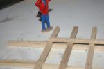 Nachdem alle Querriegel auf den Auflagerhölzer befestigt waren kam obendrauf noch die Fußleiste welche 5mmx5mm hat. Es wurde alles mit Leimzwingen ordentlich fixiert.