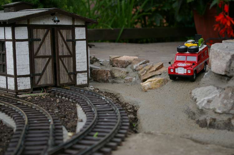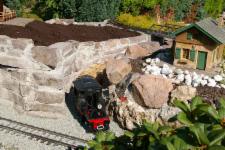 Auf dem Berg wurde auch gleich das komp. Grün erneuert und sogleich das Gasthaus "Burgenblick" aufgestellt. Die Einzelheiten zum Gebäude gibt es hier. Nach getaner Arbeit wurde abschließend der größte Bereich der Gleisanlage neu eingeschottert.