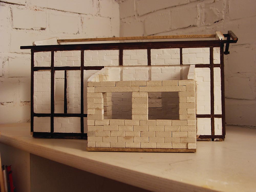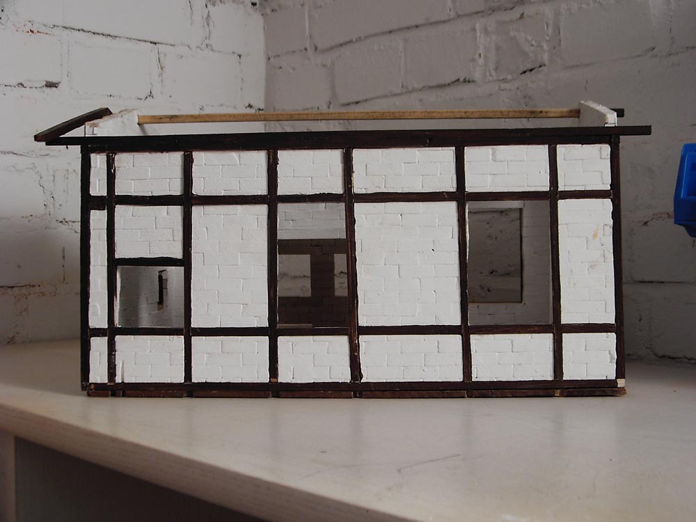 Fertigstellung des Rohbaues, Einarbeiten des Gleisausschnittes, Beginn des Fachwerkeinbaues